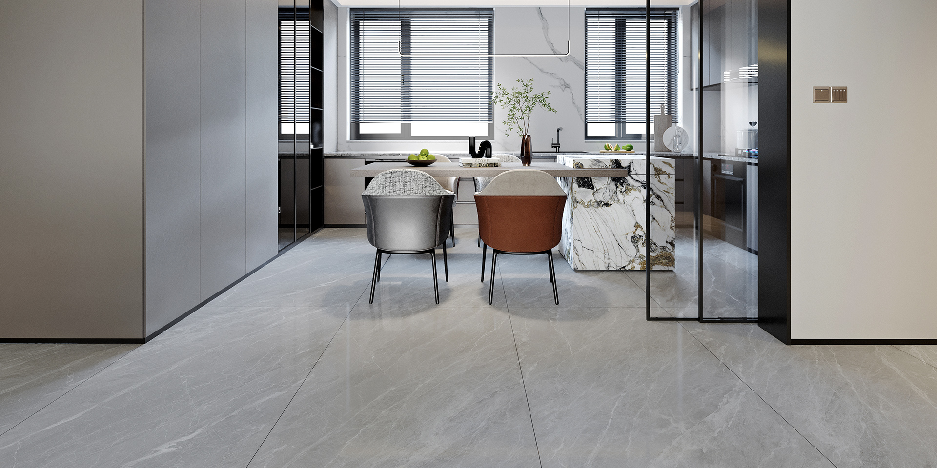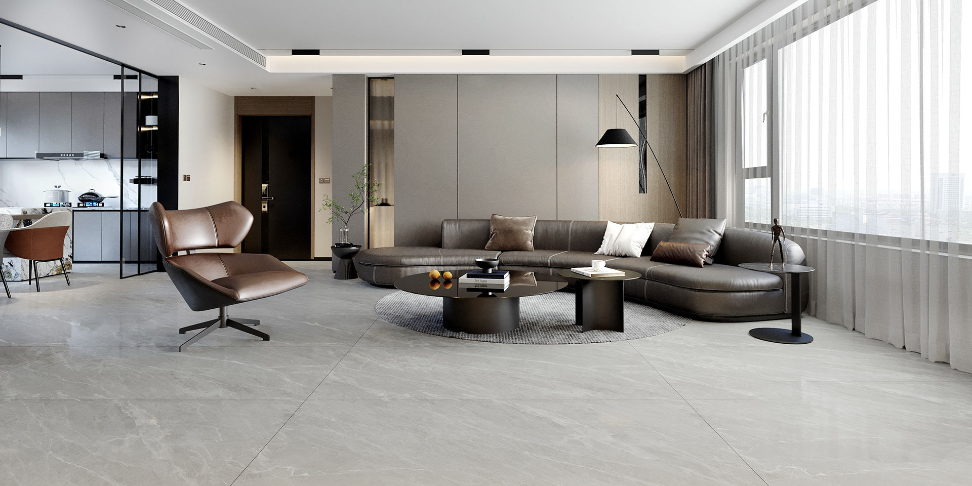個(gè)性十足的紋理自然游走在磚面上,賦予空間時(shí)尚沉穩、高貴的氣質(zhì)